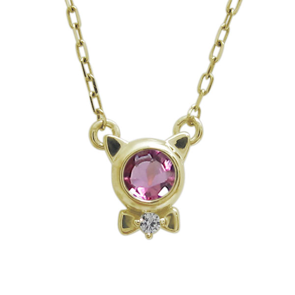 K18 ピンクトルマリンネックレス ねこ 猫 一粒 ペンダント