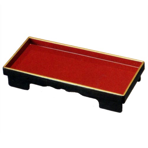 伝統工芸「紀州漆器」のご飯やお茶をのせる台です。漆器ならではの高級感が感じられます。各サイズご用意しております。紀州塗り 7寸 長手膳(茶湯台) 黒内朱 金縁付