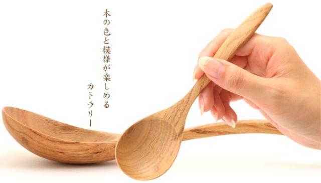 くちびるに熱くなく、やさしい温かさで接してくれる木のカトラリーは、食べ物さえもやさしく、おいしく 運んでくれます。