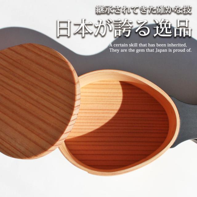 細かな年輪が生み出す独特の美しさと自然色の明るい木目、強靱さ、香りが特長の、日本の伝統工芸品として全国に知られる「大館曲げわっぱ」。その軽さと扱いやすさは、伝統工芸品だと堅苦しく考えずに「普段づかい」としていつも側に置きたくなるほどです。使用後はお湯または水で洗ってやわらかい布でふきとり、必ず上向きにして乾かしてください。正しく使えば20年は余裕でもつ逸品です。※大館曲げわっぱは品薄商品です。在庫が切れますと再入荷まで2〜3ヶ月程お待ち頂く場合があります。