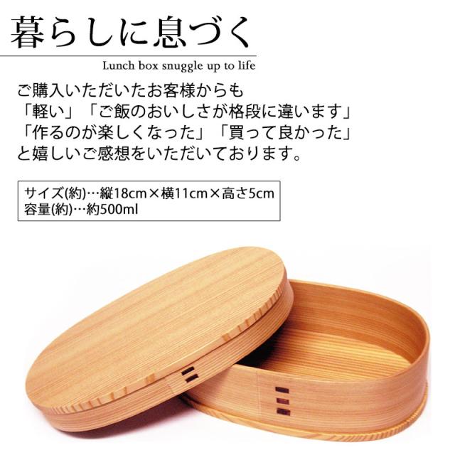 仕切り 無しお弁当箱 大館工芸社 小判 弁当箱 (小) 秋田杉 500ml 1段 日本製 お弁当箱 曲げわっぱ弁当箱 男子 大容量 女子 大人 子供 女の子 男の子 スリム おしゃれ 大舘 遠足 麺 丼 木製 送料無料