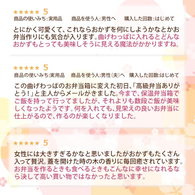 曲げわっぱは電子レンジ対応していませんが、電子レンジで温めなくても美味しいお弁当が食べられます。