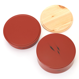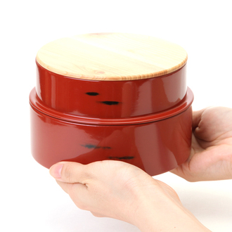 品名:≪送料無料≫天然木製 紀州塗りNjeco汎 丸型 二段弁当箱 変り根来塗り(赤)