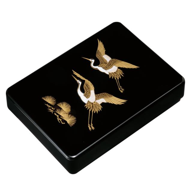 [材質] 紀州塗り 尺1寸 加伏文庫 黒 鶴 書類入れ 蓋付き 収納ボックス フタ付き 収納ケース 書類ケース 祝儀袋入れ レターケース 手紙入れ 書斎 小物入れ 文具入れ 整理箱 和雑貨 日本製 国産