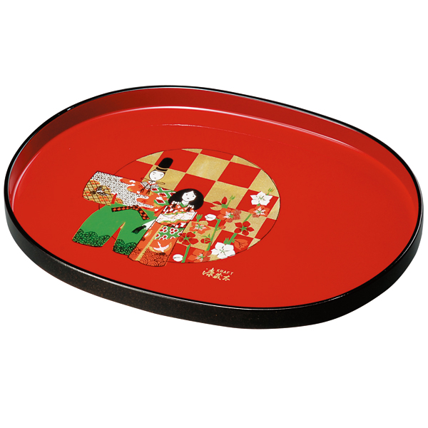 紀州塗り 尺寸 小判盆 朱 格子雛 ひな祭り お盆 トレー 和雑貨 名入れ可 ギフト プレゼント 初節句 おぼん トレイ 日本製 k_name