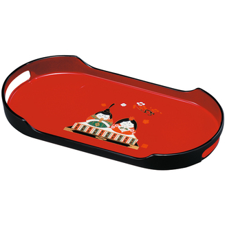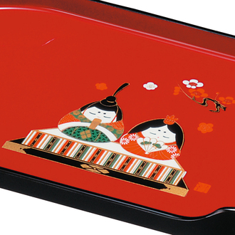 紀州塗り 尺2寸 コーヒートレー 朱 招福雛