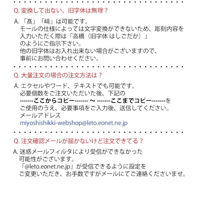 まとまったご購入の場合、名入れするお名前のご連絡は別途メールやお問い合わせフォームからも承ります。