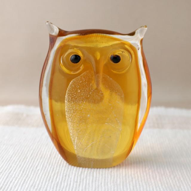 食洗機対応 手づくり ガラスオブジェ ふくろう フクロウ 梟 イエロー QD-187 置物 飾り インテリア おしゃれ かわいい k_name