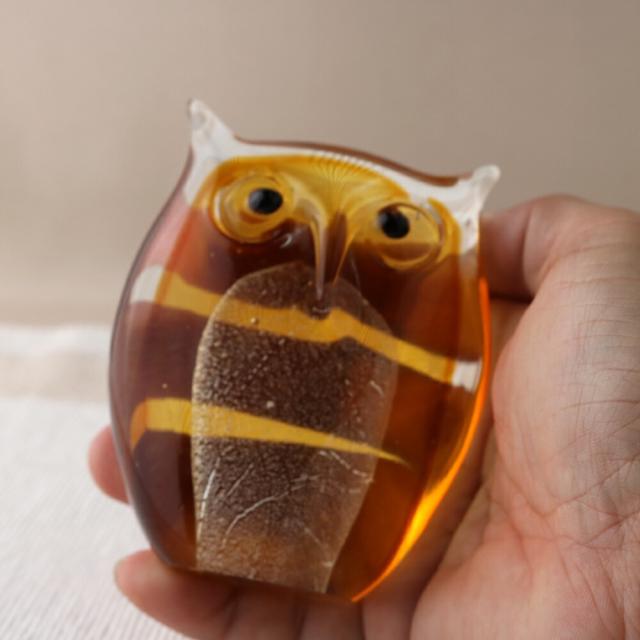 [材質] 硝子食洗機対応 手づくり ガラスオブジェ ふくろう フクロウ 梟 イエロー QD-187 置物 飾り インテリア おしゃれ かわいい