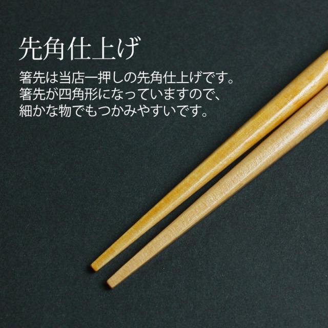 箸先は当店一押しの先角仕上げです。箸先が四角形になっていますので、細かな物でもつかみやすいです。