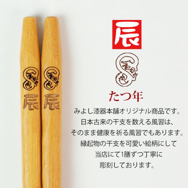 天然木製 干支箸 辰(たつ)