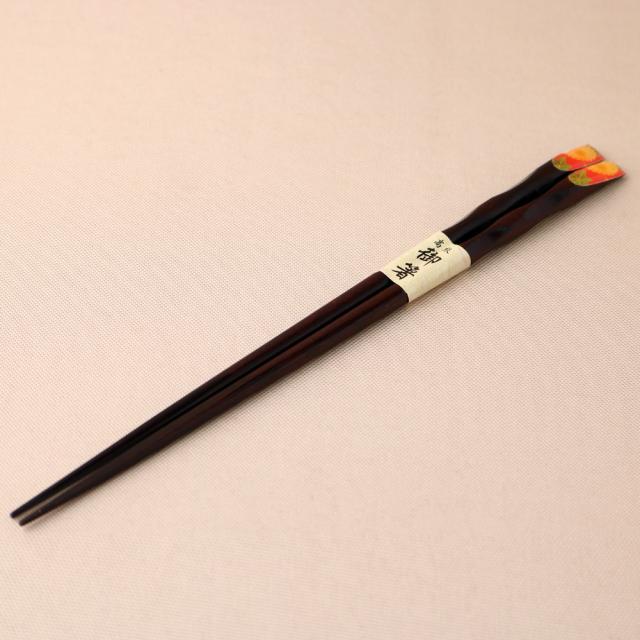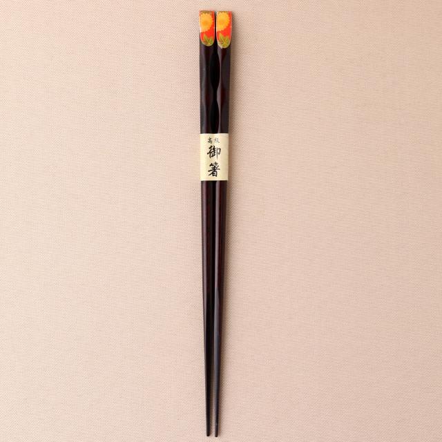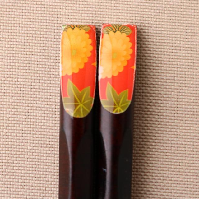 [塗装の種類] ウレタン塗装天然木製 先角箸 天削 菊と紅葉 23cm お箸 おはし