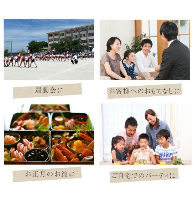 お正月にはお節を入れて、お花見に、運動会に、その他行楽行事に、自宅での食事会にはオードブル入れとして、一年中活躍してくれます!