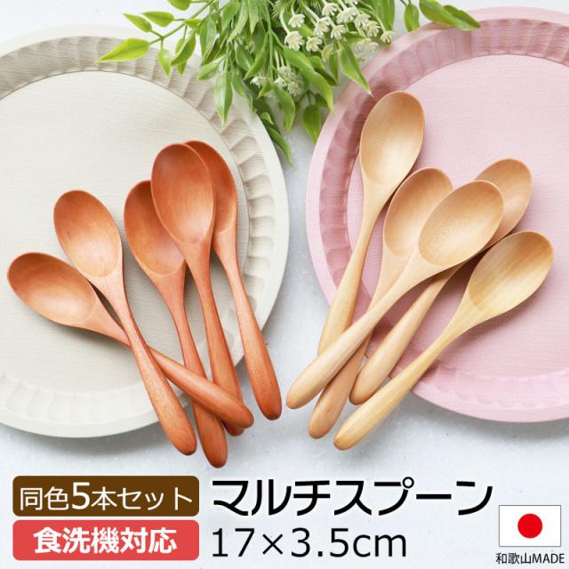 スプーン すぷーん さじ マルチスプーン 食洗機対応 17cm 5本セット 木製 送料無料 おしゃれ カフェ風 カレースプーン みよし漆器本舗オリジナル 漆器 軽い 軽量 白木 ナチュラル シンプル 漆塗り 北欧風 カトラリー 170mm 紀州PROコート 金属アレルギー 日本国内自社製造