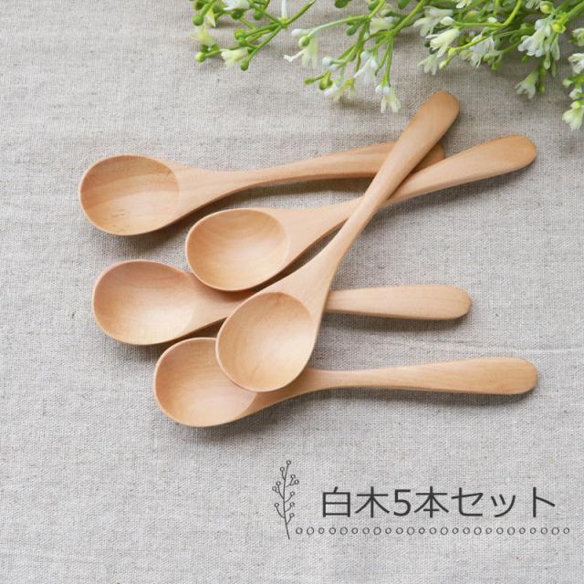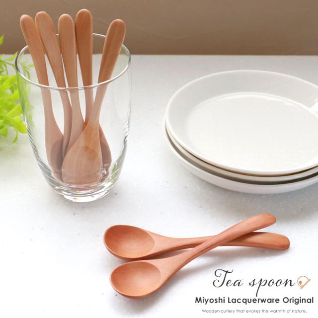 ティースプーン スプーン 食洗機対応 12.7cm 5本セット 木製 送料無料 おしゃれ カフェ風 コーヒースプーン デザートスプーン みよし漆器本舗オリジナル 漆器 軽い 軽量 白木 ナチュラル シンプル 漆塗り 北欧風 カトラリー 紀州PROコート