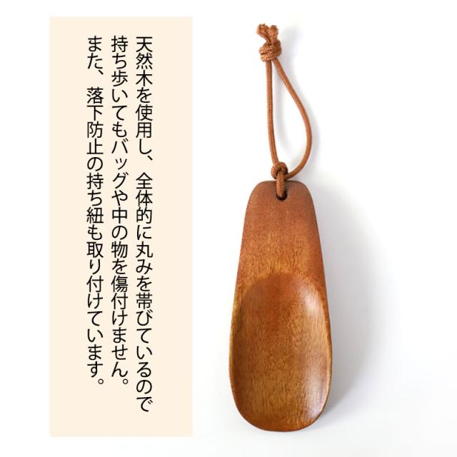 | 商品説明 | ポケットやカバンに入れてもかさばらないコンパクトサイズ。 出張やお出かけ時の持ち歩き用に。 座ったままサッと取り出してスマートに靴を履けます。 天然木を使用し、全体的に丸みを帯びているので持ち歩いてもバッグや中の物を傷付けません。 男女問わず使えるかわいい見た目。 ちょっとしたプレゼントにもいいですね。 また、落さないように持ち紐も取り付けています。 手に馴染み使いやすい、ぬくもりある靴べらをぜひお試し下さい。 就職や入学、引越しなど新しい生活の始まる方へ、新生活のお祝いに木の靴べらはいかがでしょうか。 毎日使う靴べらはとても喜ばれます。 |