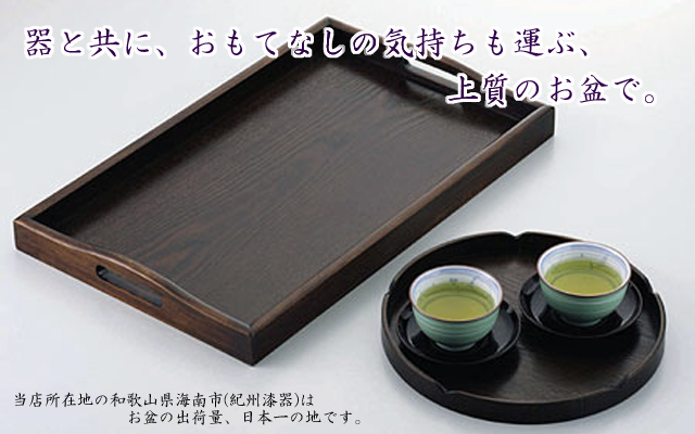 配膳盆として、幅広く使えるスタンダードなお盆です。持ち手が付いていますので、安定して持ち運びできます。