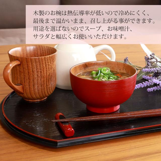 天然木製 お椀 直径11.5cm お碗 汁椀 刷毛目 朱 内木目 内摺り 漆塗り おわん スープボウル 木製 食器 味噌汁 おしゃれ 丼 どんぶり お茶碗 鉢 和風 うるし塗り 熱くならない 割れない 漆器