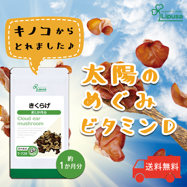 きくらげ(ビタミンD) 約1か月分 T-729 (120粒) 送料無料 健康 食物繊維 カルシウム サプリ リプサ Lipusa 公式 agesugi_sbe