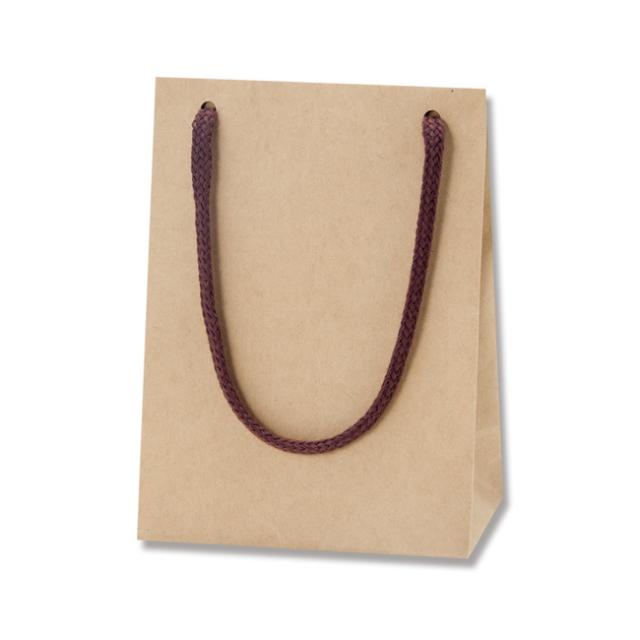 ギフトにおすすめの小型の紙袋です。アクセントに持ち手の色を本体の色とかえています。口ボール・底ボール付 手紐:アクリル紐。