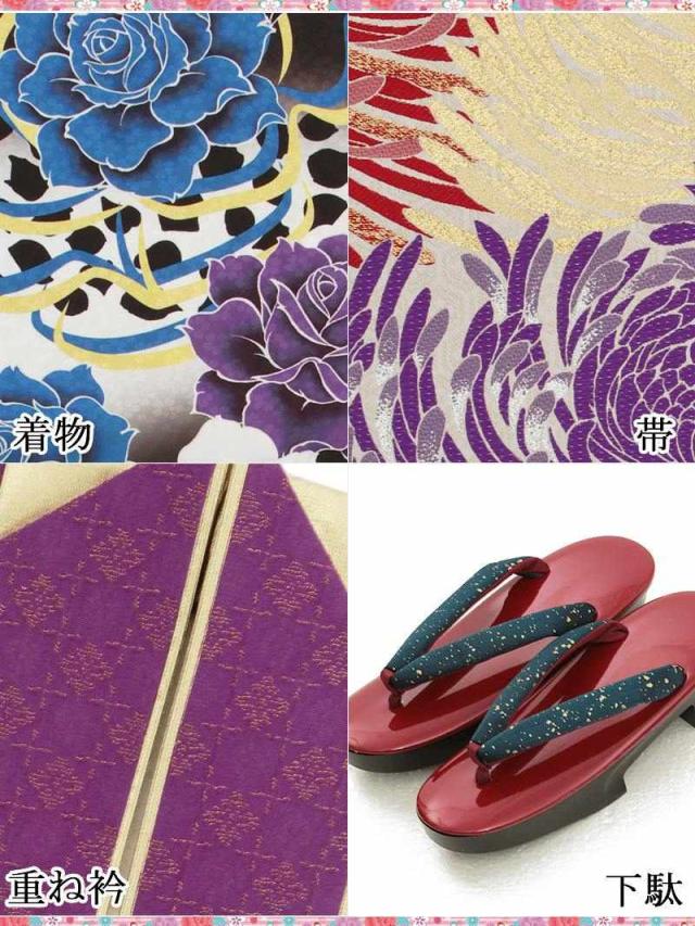 ☆華やかなお仕立て振袖に帯や下駄、着付けの小物が付いた振袖セットは届いてすぐ着れる16点フルコーデ着物セット。