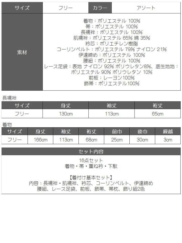 内容:長襦袢・肌襦袢、衿芯、コーリンベルト、伊達締め、腰紐、レース足袋、前板、飾帯、帯枕、飾り紐2色