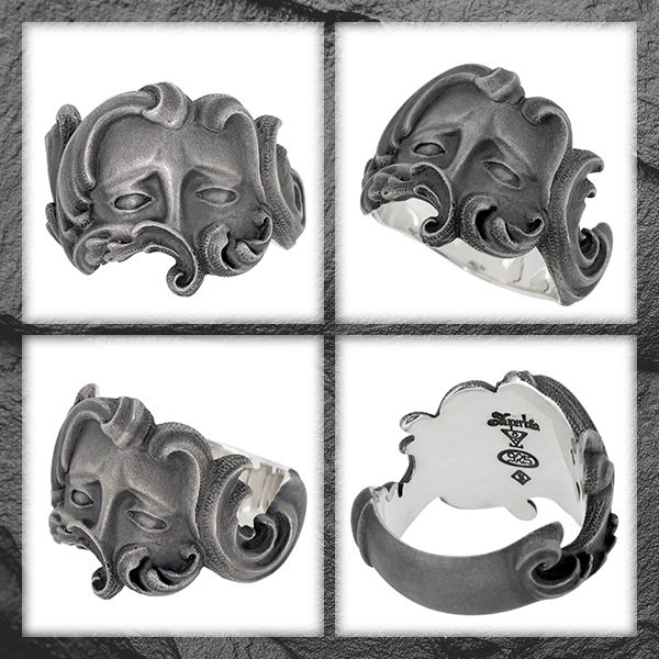 艶消しと暗めのいぶしがダークな雰囲気を演出する人面のデザインです。