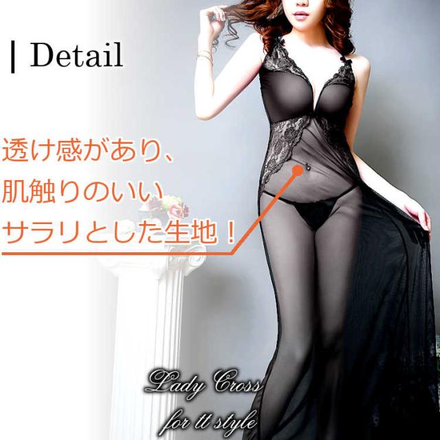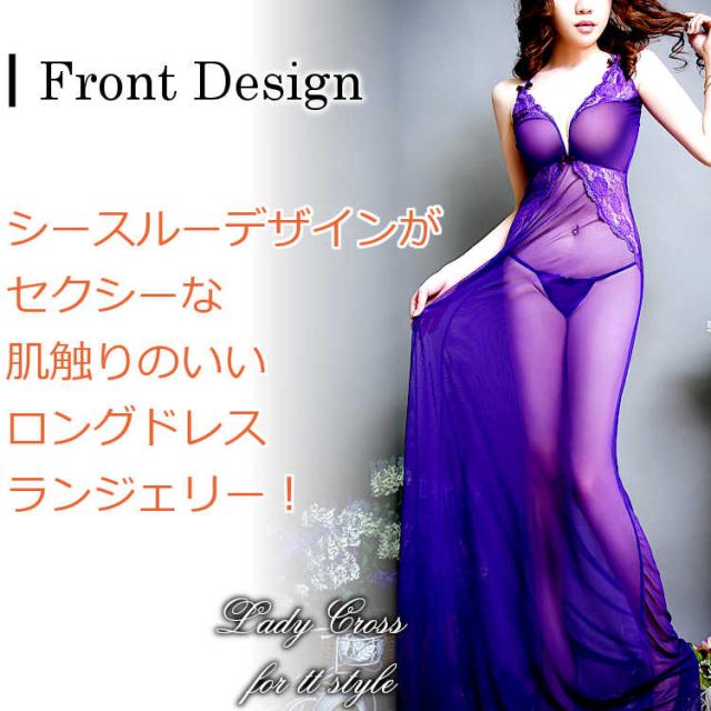 セクシー ナイトドレス ロング丈 シースルー ランジェリー ネグリジェ レディース インナー パープル 紫 ブラック 黒 送料無料 ネコポス便