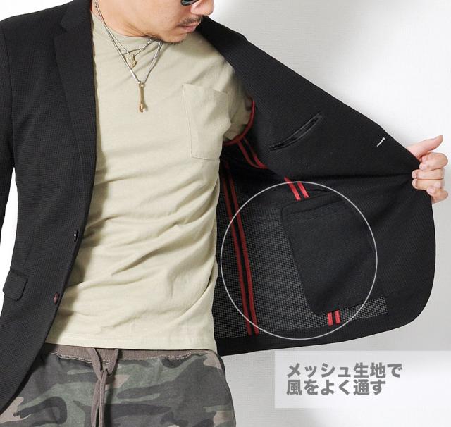 期間限定 SALE ストレッチ テーラードジャケット メッシュ 格子柄 通気性 速乾 #T358 メンズ ビジネス カジュアル 軽量 薄型 サマーJKT M便