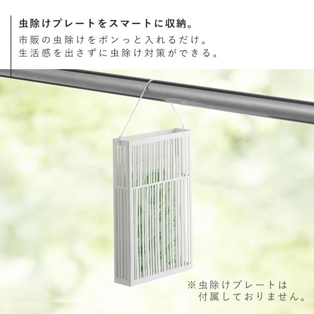 付属の紐で、物干し竿に吊り下げたり、玄関扉にマグネットで取りつけるだけ。全く生活感が出さずに、虫除け対策ができます。