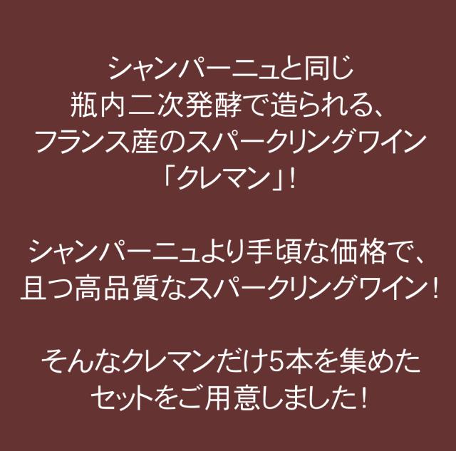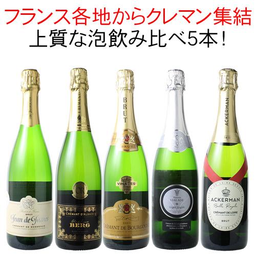 【送料無料】ワインセット 第35弾 クレマン 飲み比べ 5本 セット スパークリング シャンパン製法 瓶内二次発酵 ソムリエ厳選 クレマンだけ 御祝 ギフト 誕生日