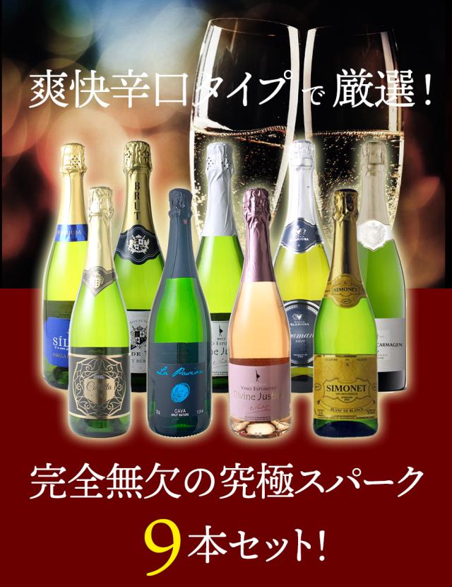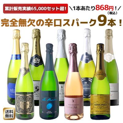 【送料無料】ワインセット 第170弾 辛口 スパークリング ワイン 9本 セット 1本あたり868円(税抜789円) カヴァ入 シャンパン製法入 御祝 誕生日 ギフト プレゼント パーティー 夢の9本 ソムリエ厳選 カバ ワイン wine cava ドライ