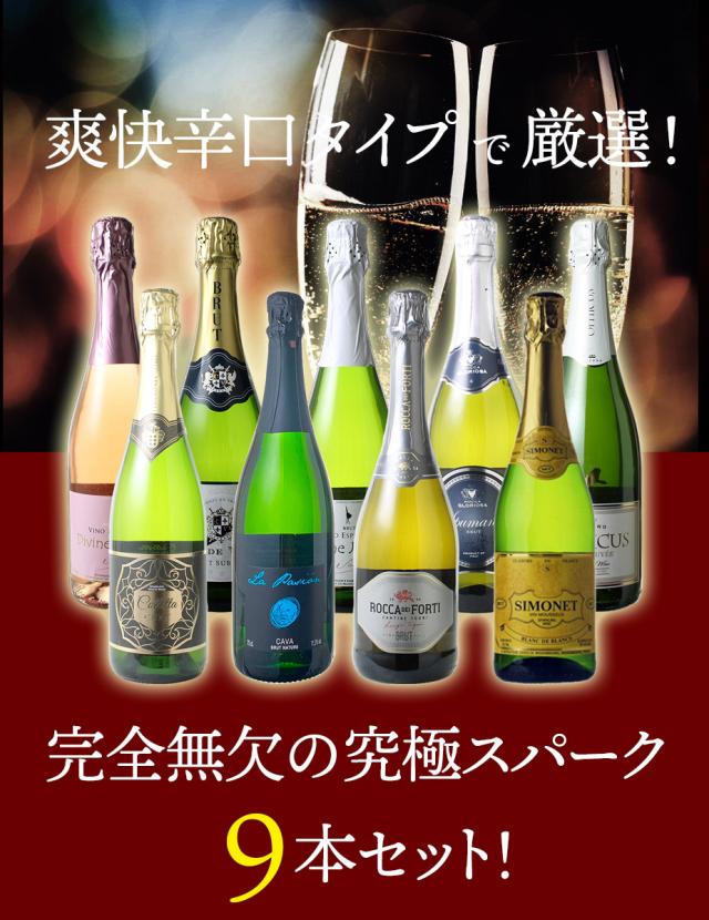 【送料無料】ワインセット 第173弾 辛口 スパークリング ワイン 9本 セット 1本あたり868円(税抜789円) カヴァ入 シャンパン製法入 御祝 誕生日 ギフト プレゼント パーティー 夢の9本 ソムリエ厳選 カバ ワイン wine cava ドライ