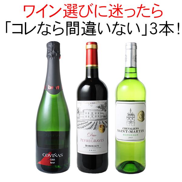 送料無料 第74弾 ワインセット 迷ったらこれ 赤ワイン 白ワイン スパークリング ワイン 3本 セット ボルドー スペイン