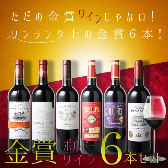 世界のワインコンクールで金賞を受賞したボルドーワインだけ6本!なんと送料無料!