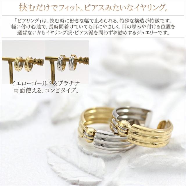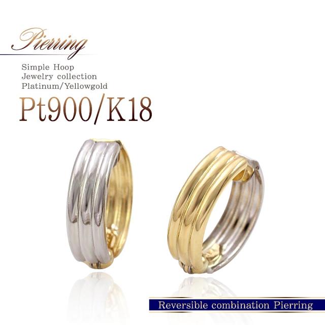 ピアリング 正規品 フープ イヤリング プラチナ 18金 ゴールド リバーシブル ジュエリー シンプル アクセサリー k18 レディース 18k ピアスに見える イヤーカフ 母の日 ギフト 2026 記念日 誕生日 女性 彼女 輪っか リング コンビジュエリー