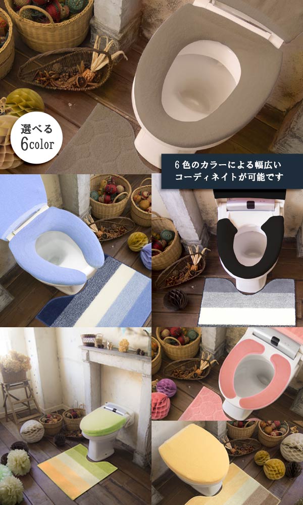 ![]() 吸着便座カバー | ![]() 兼用フタカバー | ![]() トイレマット ボーダー柄 |