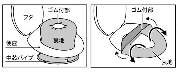 ![]() 便座カバーの裏 商品の性質上、便座カバーが若干縮んでいることがあります。その場合は商品を軽くのばしてから取り付けてください。 ![]() ![]() ![]() 便座カバーには種類があります。 お間違え無いようお買い求め下さい。 ![]() |