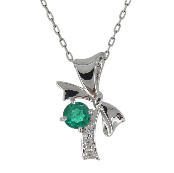 エメラルド 5月誕生石 リボンネックレス プラチナ レディース