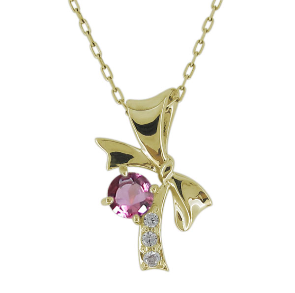 ピンクトルマリンネックレス リボンモチーフ レディース 18金 ペンダント