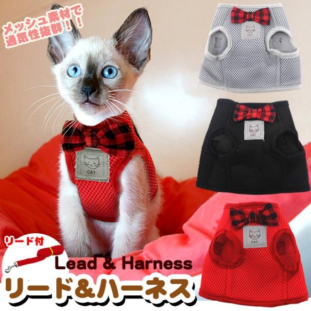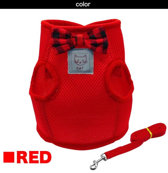 猫 犬 ハーネス リード ペット メッシュ 服 ウェアハーネス 胴輪 キャット ドッグ リーシュ リボン h0173
