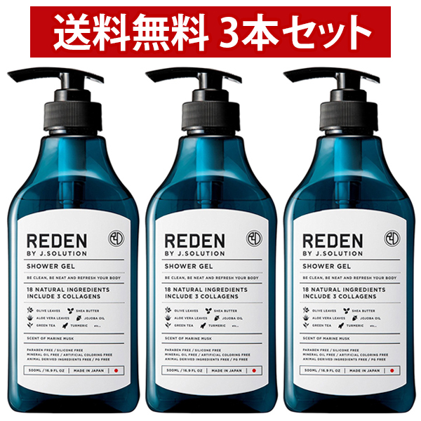 【まとめ買い】REDEN SHOWER GEL リデン ボディソープ ボディーソープ 500ml 3本セット マリンムスク 低刺激 いい香り 無添加 フレグランス 天然由来 洗浄 スキンケア ボディケア 爽快 爽やか さっぱり
