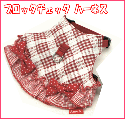 [アモワークス]うさぎ用胴輪ブロックチェック ハーネス(レッド)