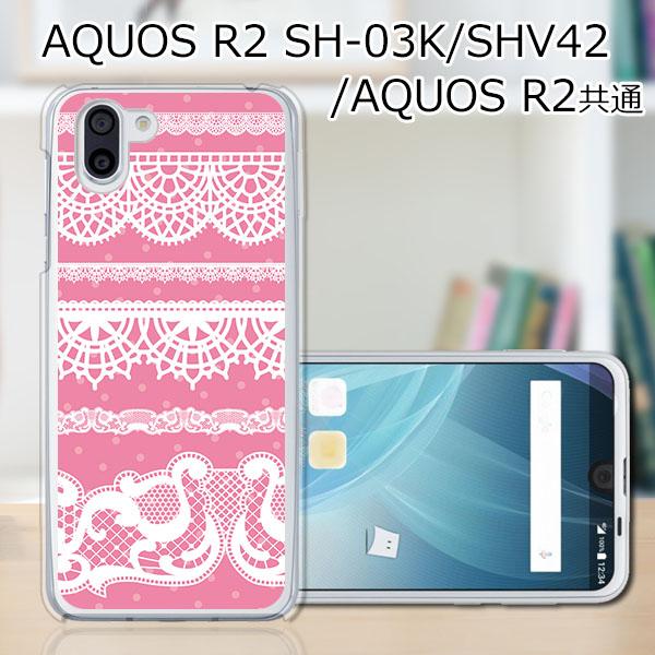 au AQUOS R2 SHV42/docomo SH-03K ハードケース/カバー 【Pinkレースボーダー PCクリアハードカバー】