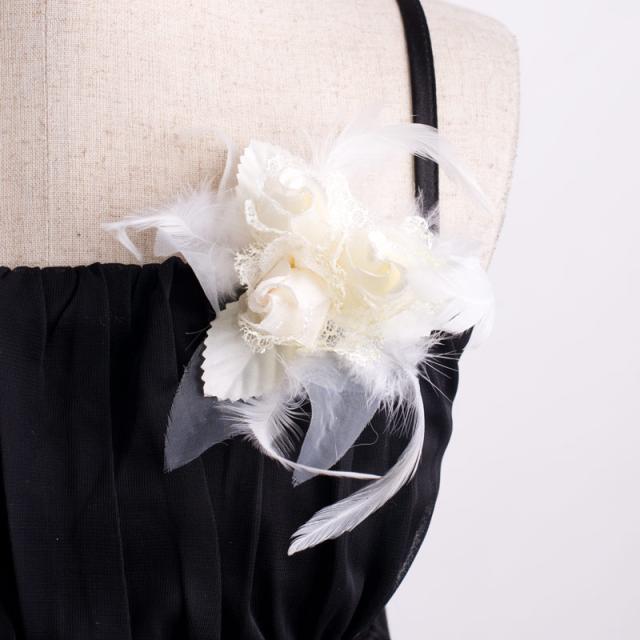 トリプル羽根コサージュ 結婚式や2次会などのパーティー 卒業式や入学式・入園式などのフォーマルな場面で