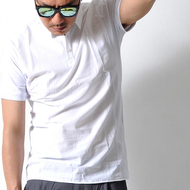 【ポイント20倍UP】完売御免【送料無料】コットンリネン 切り返し 半袖 ポロシャツ 無地 トップス メンズ シンプル シャツ #TP35 M便