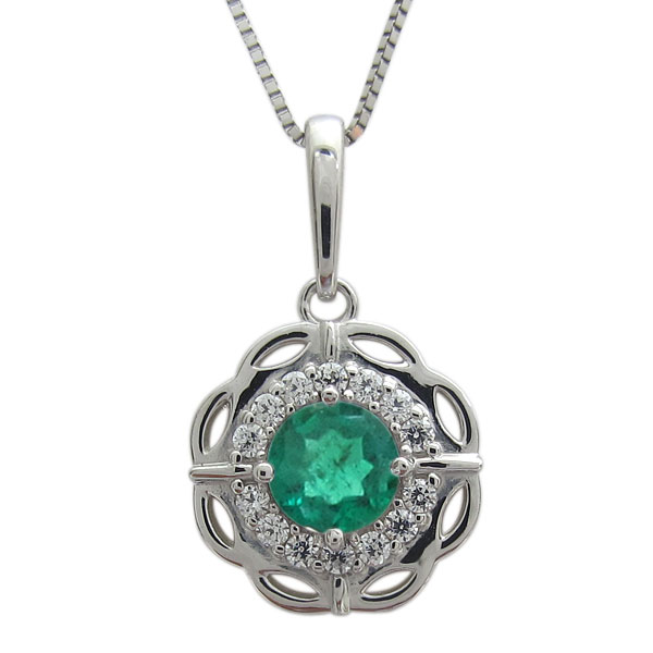 プラチナ フラワーネックレス エメラルド 5月誕生石 ペンダント