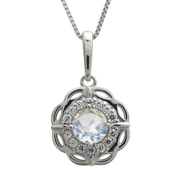 プラチナ フラワーネックレス ロイヤルブルームーンストーン 6月誕生石 ペンダント