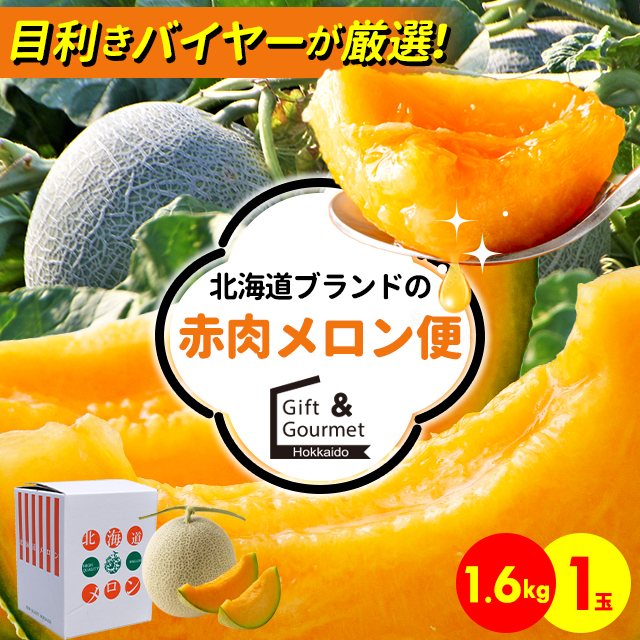 2026年予約 メロン ギフト 送料無料 【目利きバイヤーにおまかせ!】北海道ブランドの赤肉 メロン便 約1.6kg×1玉(優品または秀品) / 1玉 北海道産 北海道 道産 メロン めろん フルーツ 果物 旬 旬の果物 旬のフルーツ 産地直送 内祝い 御祝い 贈り物 贈答品 贈答用