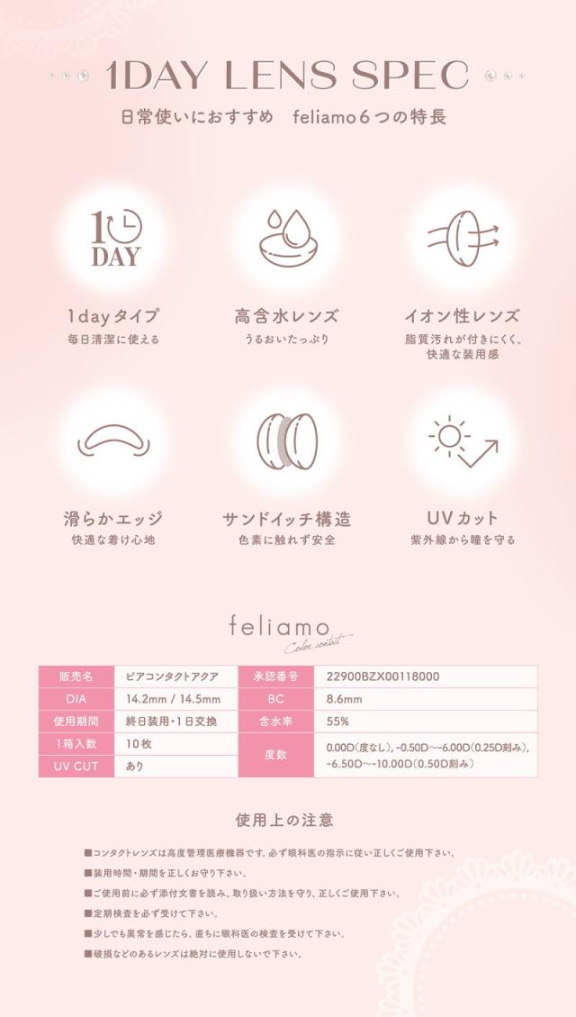 feliamo 1day フェリアモ ワンデーカラコン 1箱10枚入り 度あり 度なし UV加工 高含水 55% ナチュラル カラーコンタクト 白石麻衣